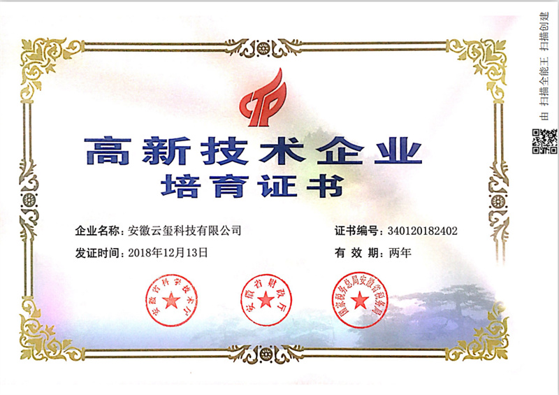 • 安徽省科技成果登錄證書